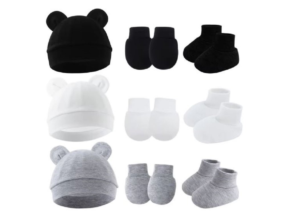Tento praktický a roztomilý 3dílný set čepičky, rukavic, a ponožek bude každému novorozenci moc slušet a bude se v něm při svých prvních hodinách svého života cítit pohodlně a zároveň bude v bezpečí proti poškrábání.