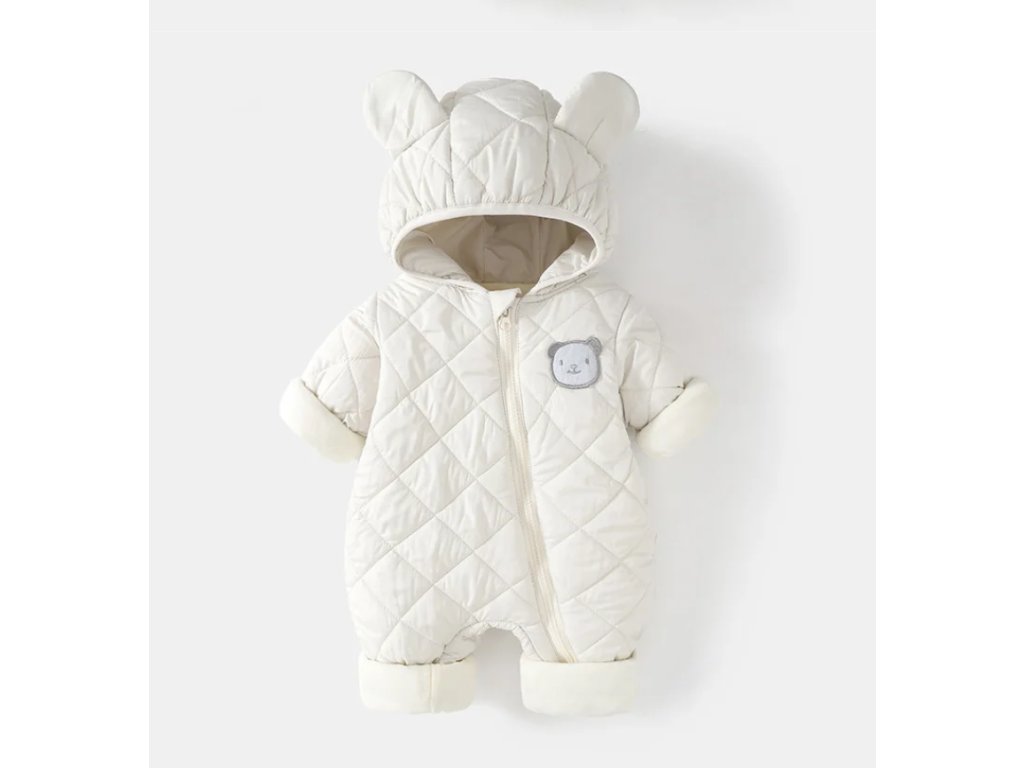 Roztomilá zateplená kombinézka, která udrží vaše miminko v teple během podzimních i zimních dnů. Kapuce chrání hlavičku a ouška před chladem a veselá nášivka s medvídkem dodává kombinéze hravý vzhled. Díky praktickému zapínání je oblékání i přebalování rychlé a snadné. Perfektní volba na podzimní a zimní výlety s miminkem.