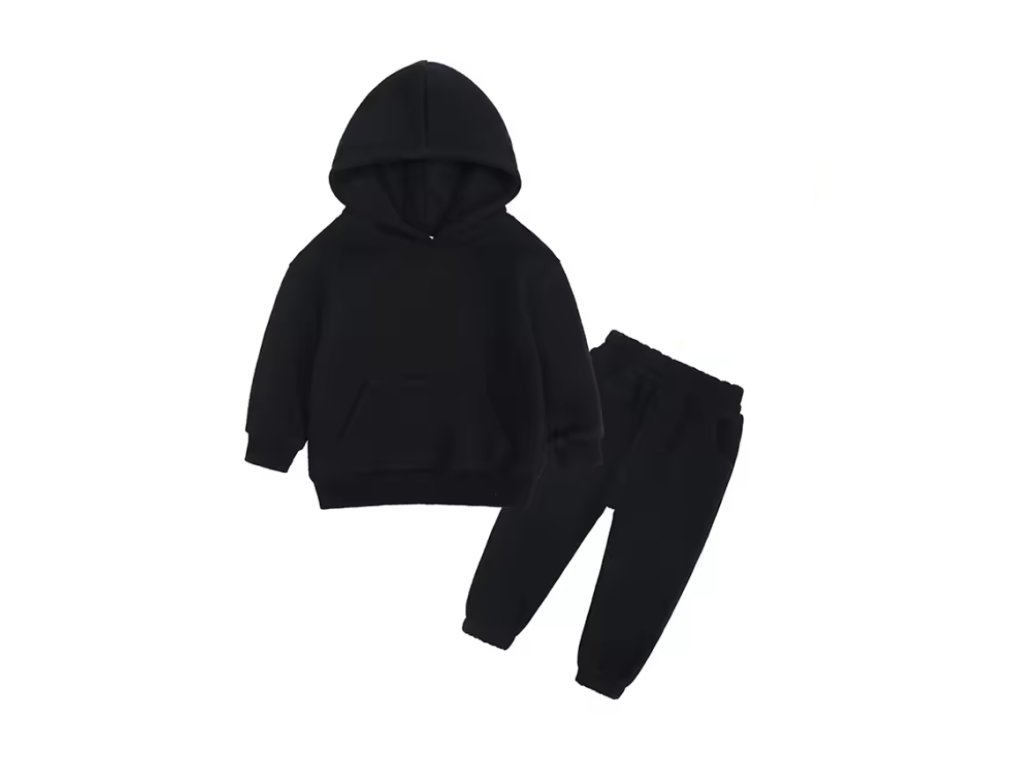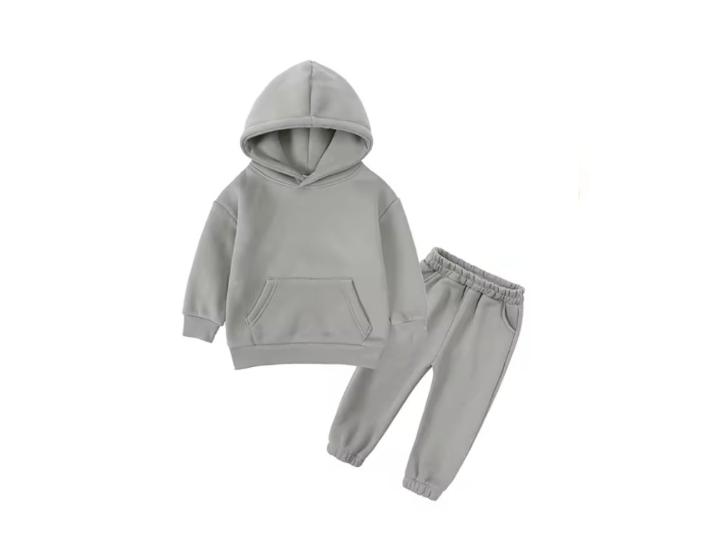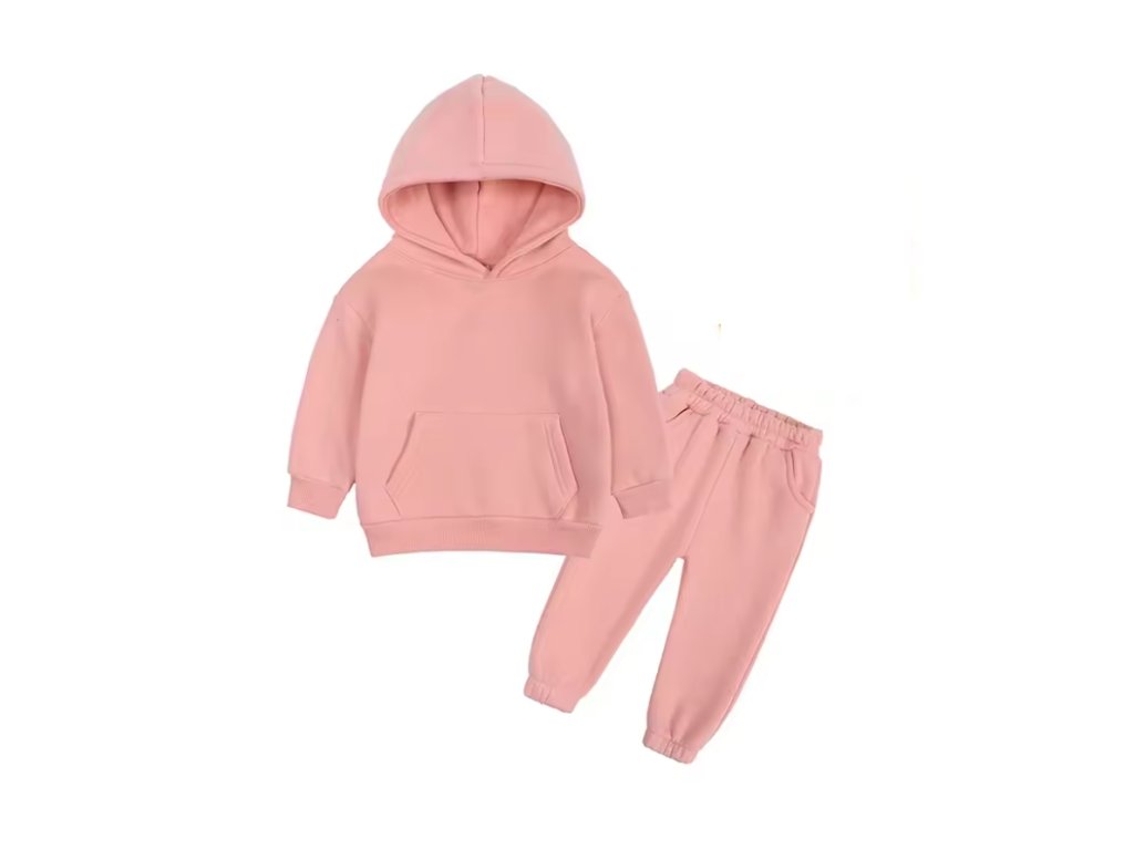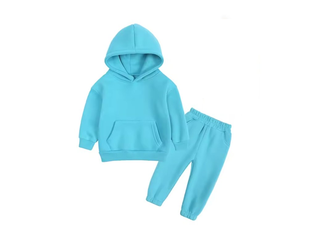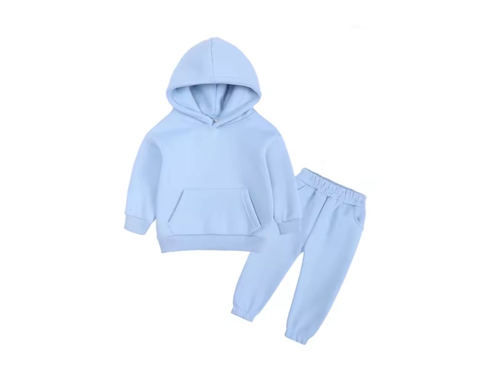 Stylová tepláková souprava, která se hodí jak pro kluky, tak holky. Stačí si vybrat svou barvu! Mikina má klokaní kapsu a kapuci. Tepláčky mají v pase a kolem kotníků gumu. Ideální pro chladnější dny!