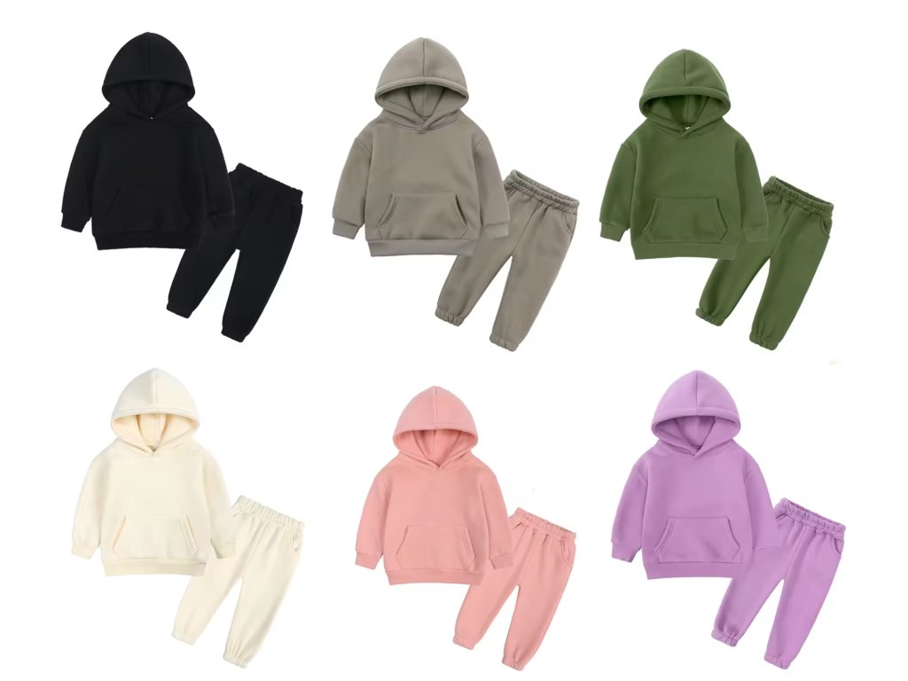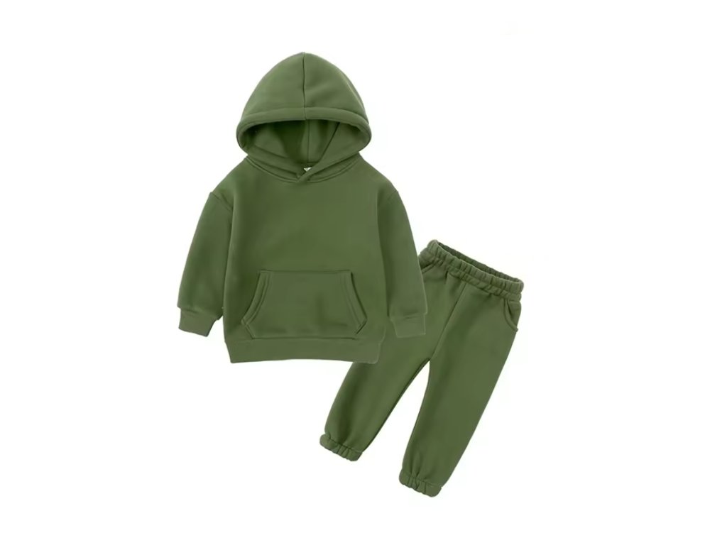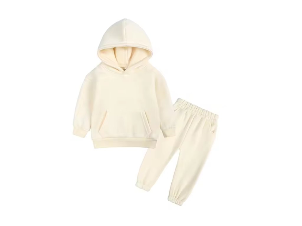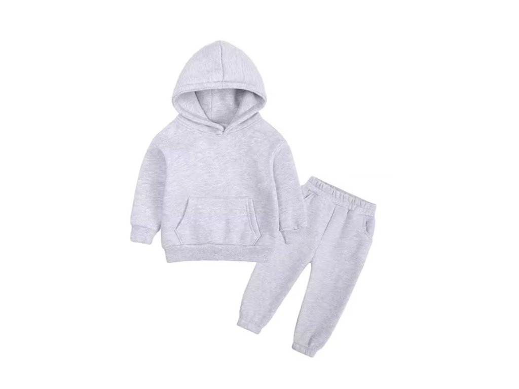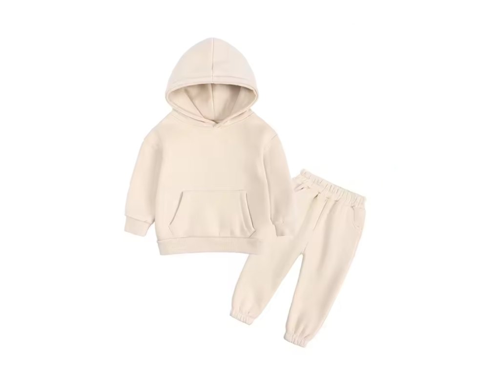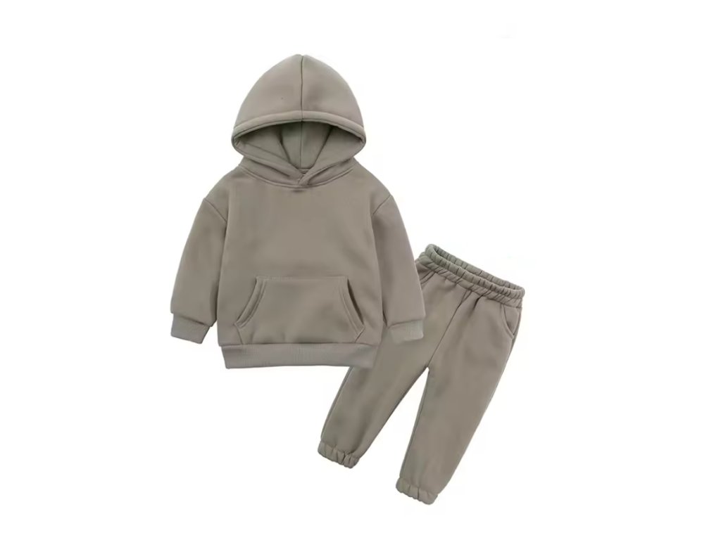 Stylová tepláková souprava, která se hodí jak pro kluky, tak holky. Stačí si vybrat svou barvu! Mikina má klokaní kapsu a kapuci. Tepláčky mají v pase a kolem kotníků gumu. Ideální pro chladnější dny!