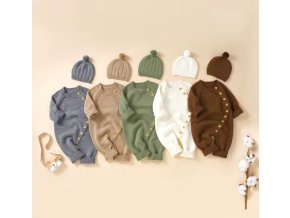 Pletený overal s knoflíčky a ladící čepicí s bambulí