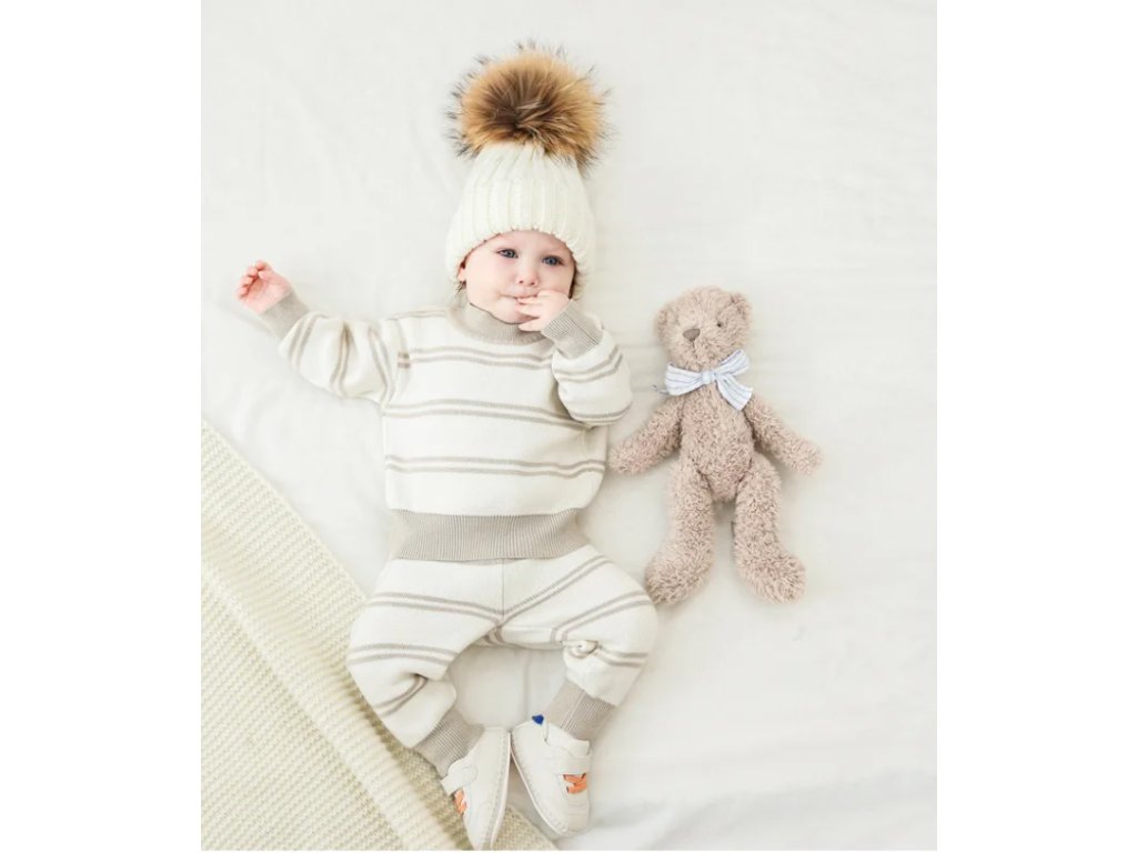 Stylový dvoudílný set pro novorozence a kojence, který kombinuje pohodlí a roztomilý design. Ideální jako dárek k narození miminka, na focení nebo každodenní nošení v podzimních měsících.