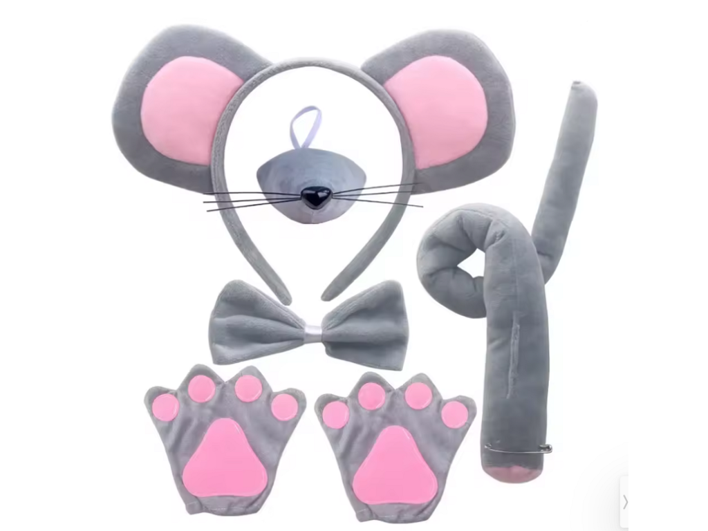 - Čelenka s oušky, čumáček, packy, ocásek a mašle na krk