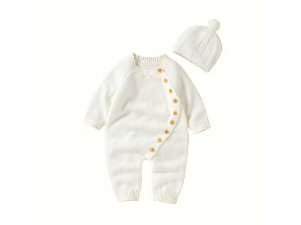 Dopřejte svému miminku teplo a pohodlí v chladných měsících s tímto roztomilým overalem a ladící čepicí s bambulkou. Ať už na procházku do města nebo na focení, tento kousek se v šatníku vašeho miminka rozhodně neztratí!