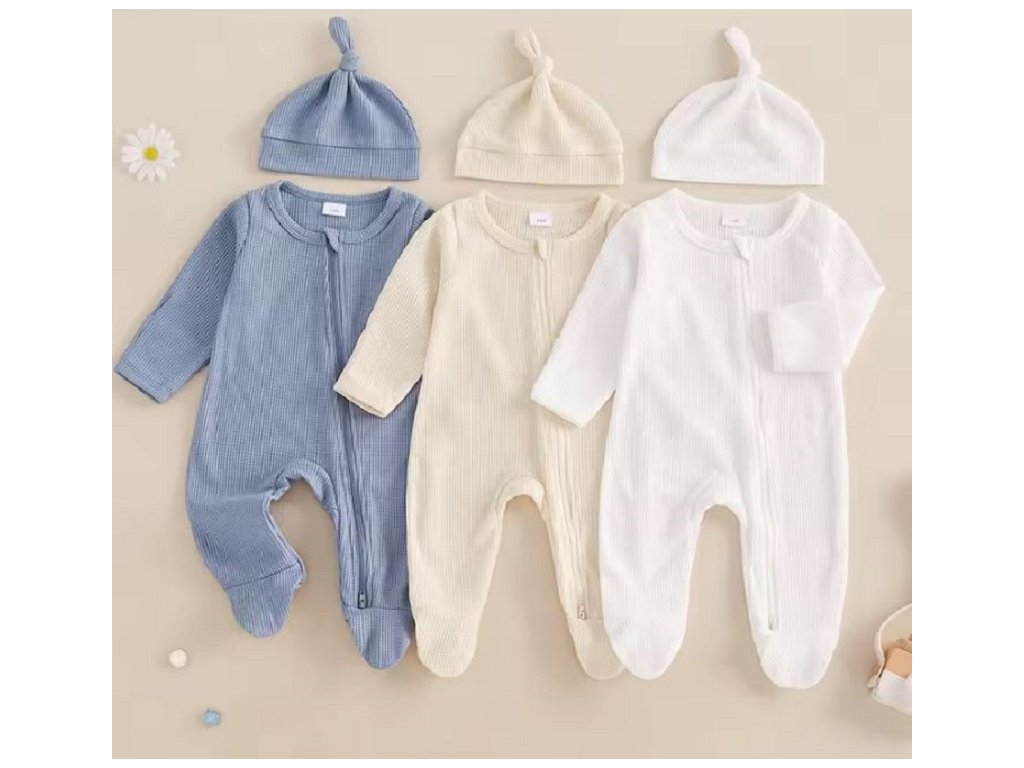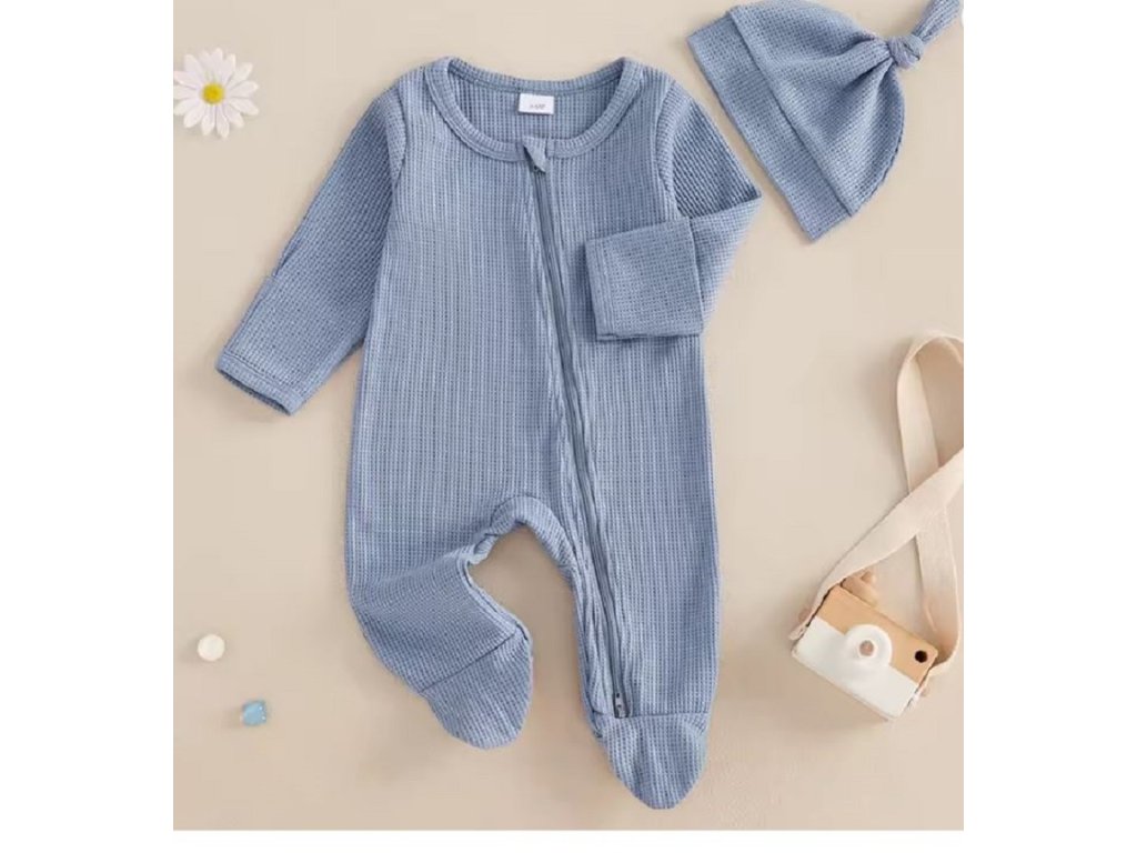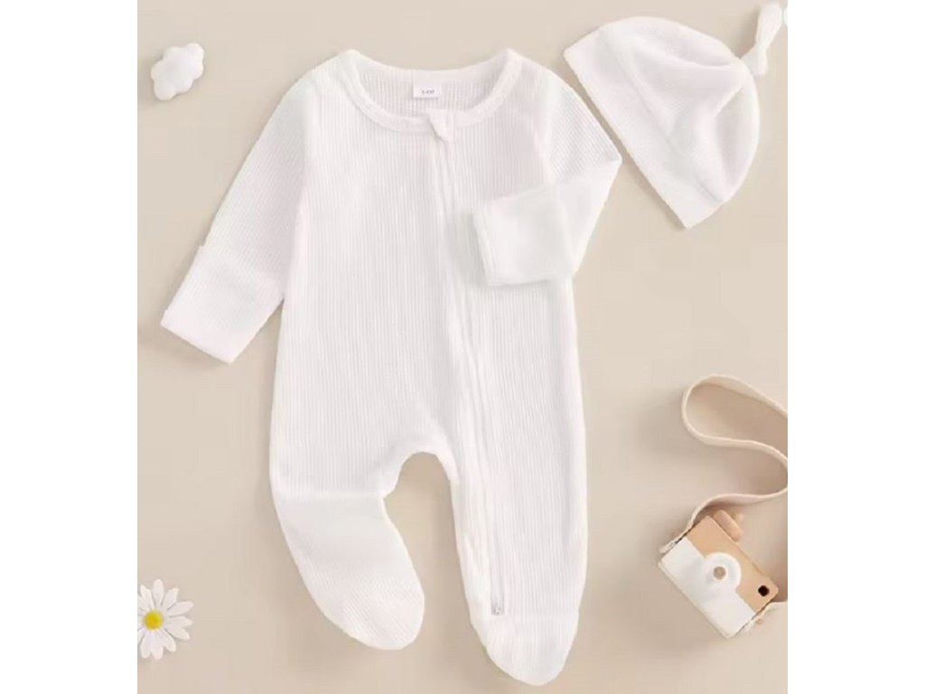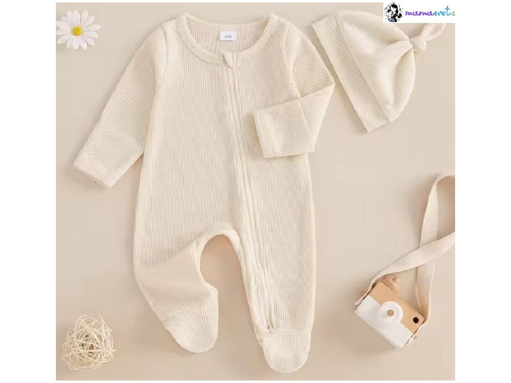 Novorozenecký overal s dlouhým rukávem a čepičkou
