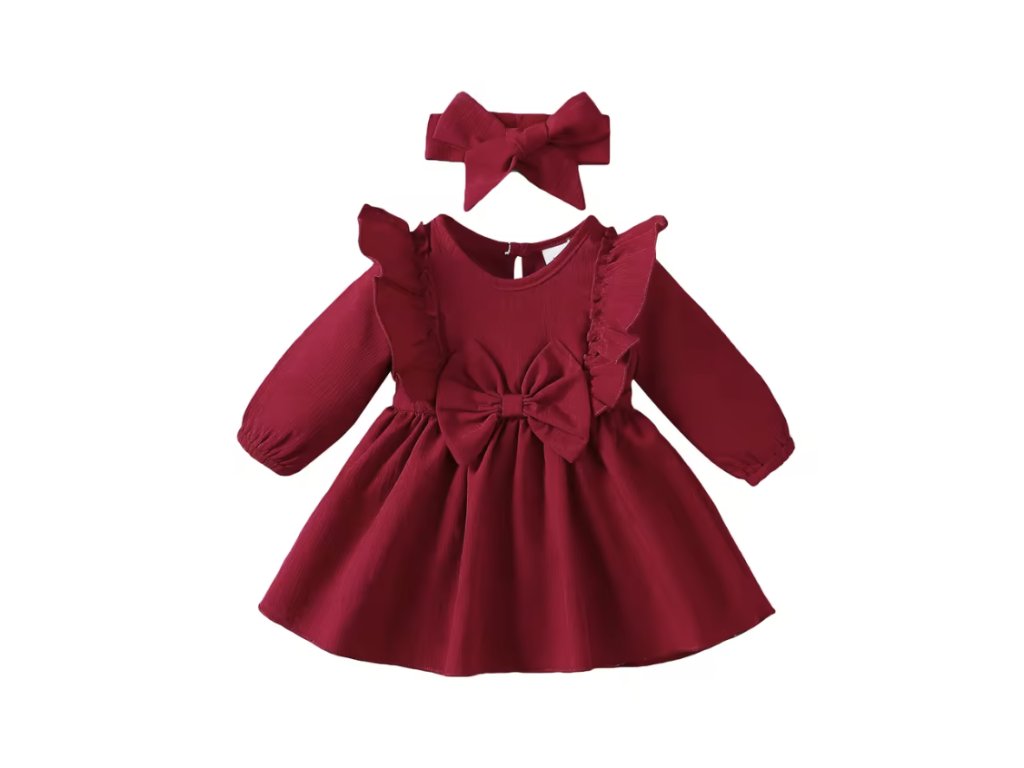 Roztomilé šaty pro nejmenší v červené barvě jsou ideální pro focení a nošení na slavnostní příležitosti.